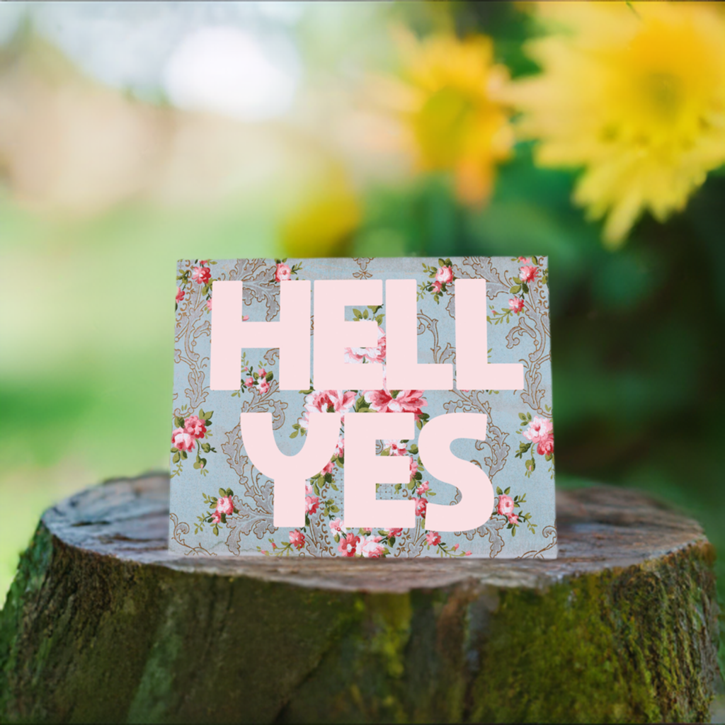 Send a big 'HELL YES!' to someone special with this vibrant, vintage-style floral card! Featuring stunning pastel colors, this is the perfect way to encourage, congratulate, and celebrate in style. Bold typography make sure they get the message while the delicate flowers add a pretty touch. The perfect card for birthday, wedding, engagement, new home, baby, graduation or just to say hi!