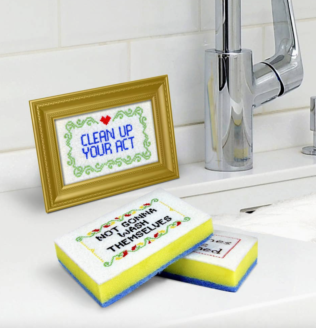 Subversive Sponges by Fred and Friends are embroidered with hilarious messages that convey how we all really feel about doing dishes. Comes with a little frame that you can prop up or suction cup to the side of your sink. Retro styling for a classic look that looks great in any kitchen!